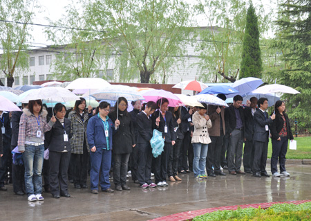 天空陰霾,細(xì)雨紛紛。4月21日上午10時,黎明重工科技全體員工冒雨面向國旗肅立,默哀3分鐘,沉痛悼念4月14日青海省玉樹藏族自治州大地震遇難同胞。默哀結(jié)束后,公司領(lǐng)導(dǎo)走向捐款箱捐款, 全體職工緊隨其后,紛紛向災(zāi)區(qū)人民獻(xiàn)上了自己誠摯的愛心。