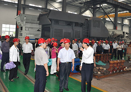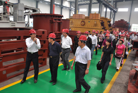 喬經(jīng)理首先代表集團公司對中青班各位領導的光臨表示了熱烈的歡迎,對公司發(fā)展、工業(yè)園運營、產(chǎn)品生產(chǎn)等進行了具體詳細的講解。在稍后的工業(yè)園巡查過程中,向考察組一行系統(tǒng)介紹了公司在礦石破碎和人工制砂成套工藝的技術優(yōu)勢,以及公司在超細粉加工、電廠脫硫石灰石磨粉、超壓梯形磨粉機等節(jié)能環(huán)保設備研發(fā)領域的節(jié)能降耗、市場開發(fā)等情況,現(xiàn)場詳細解答了考察組提出的各種問題。